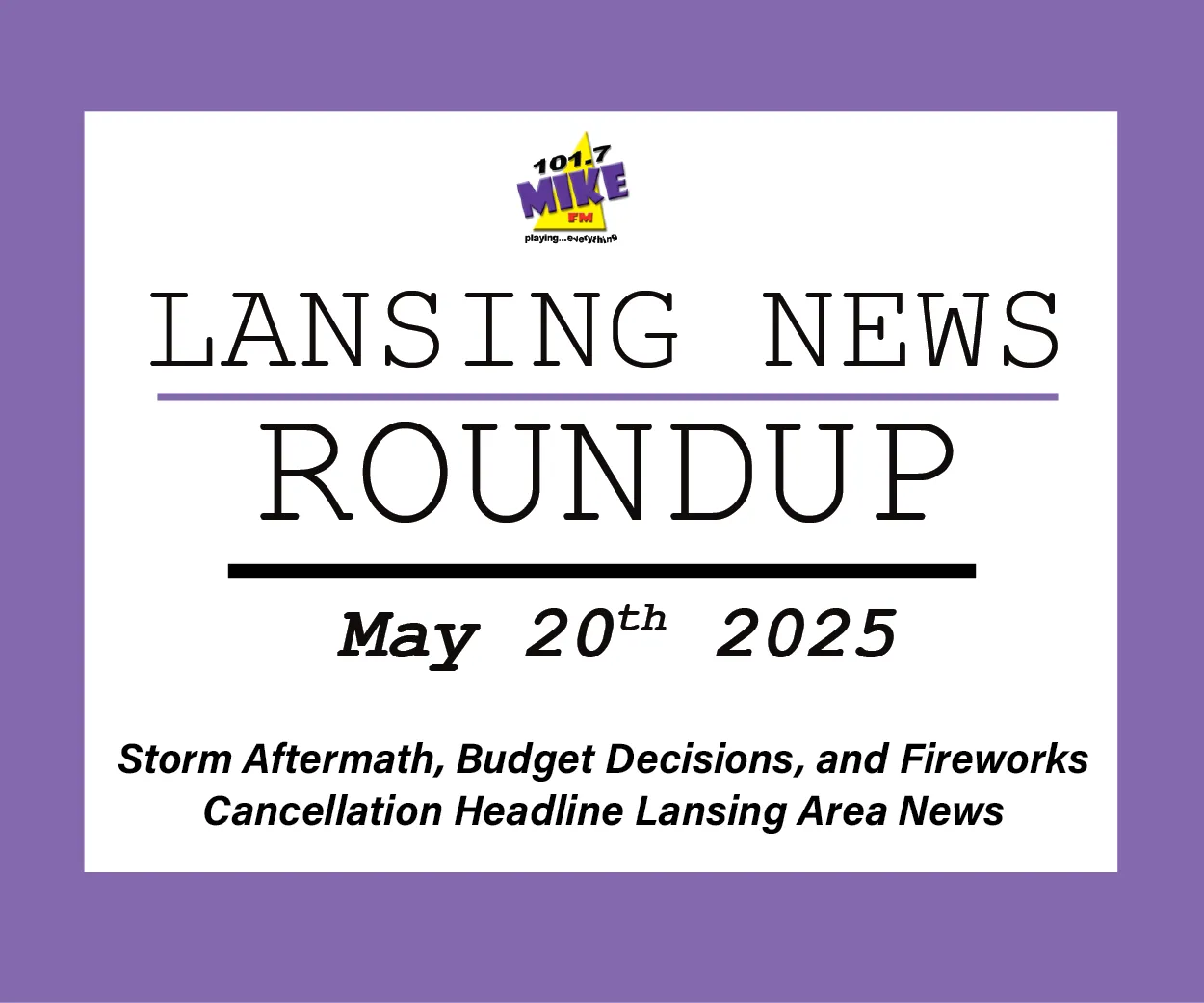 Storm Aftermath, Budget Decisions, and Fireworks Cancellation Headline Lansing Area News