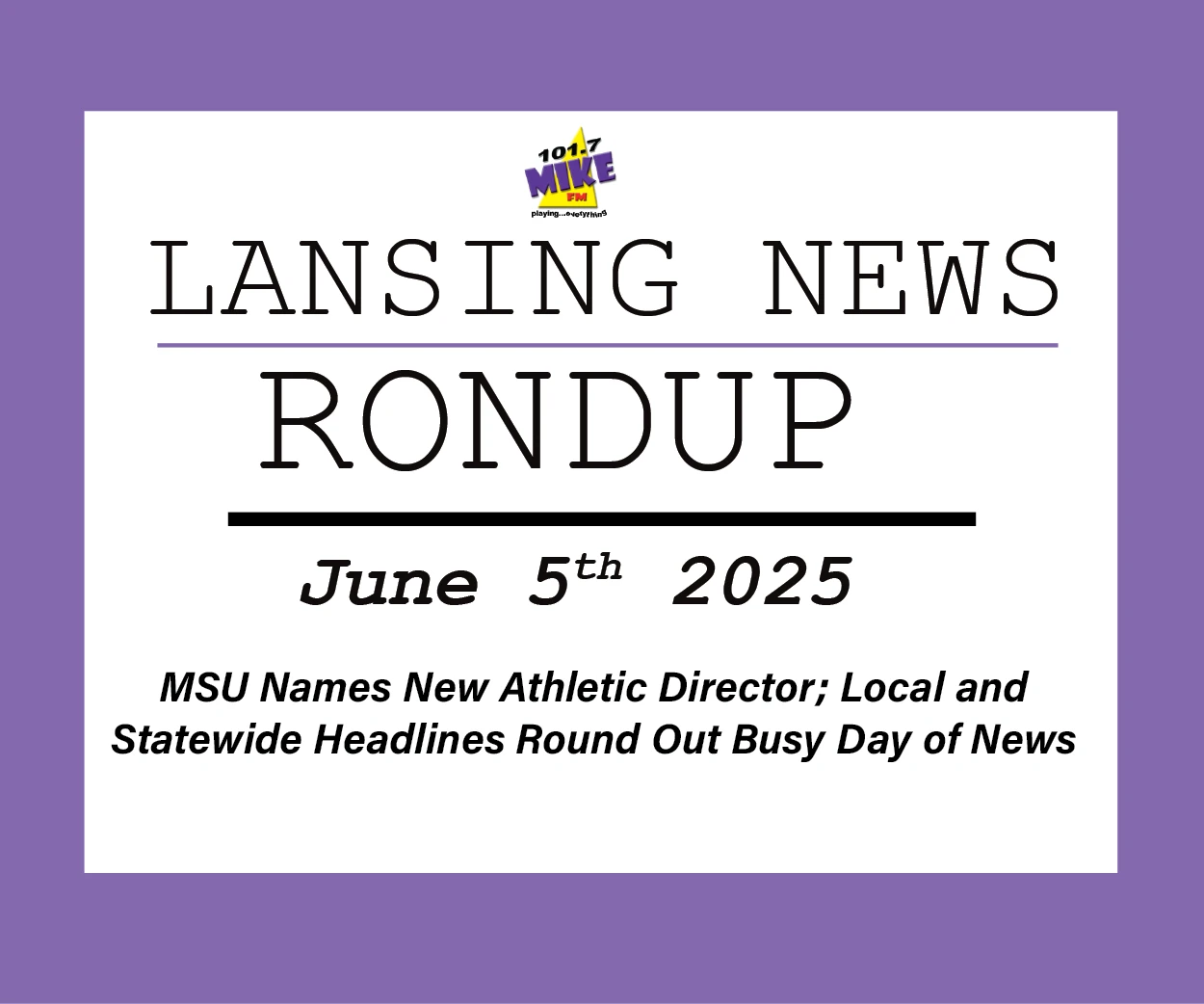 MSU Names New Athletic Director; Local and Statewide Headlines Round Out Busy Day of News