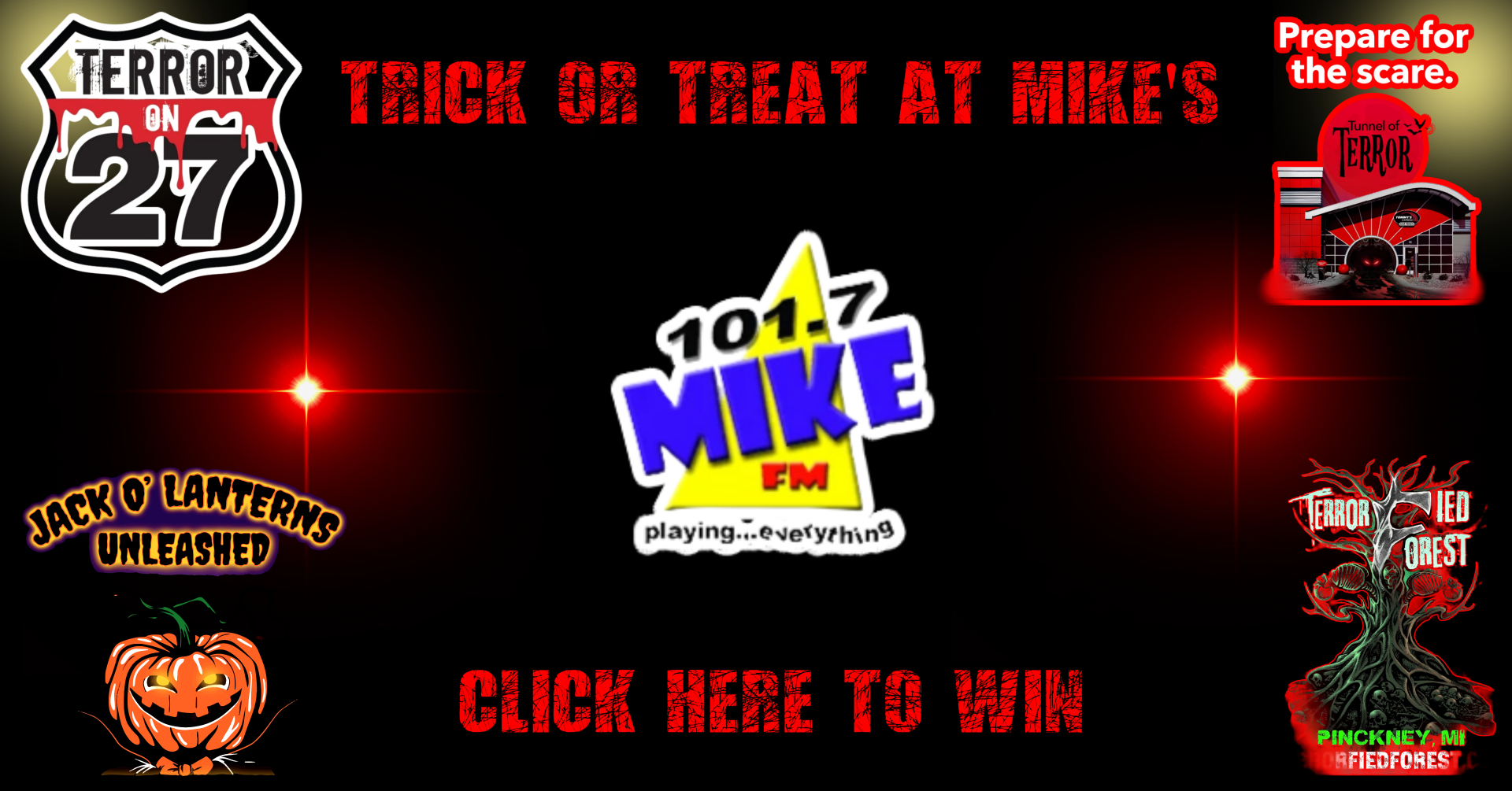 Time to Trick or Treat at Mike's House! Sign up to win a Halloween Prize Pack of passes to great Lansing area Halloween attractions. You'll win a tickets to Jack O'Lanterns Unleashed at the Ingham County Fairgrounds, a free trip through the Tommy's Express Wash Tunnel of Terror, and a pair of passes to either the Terrorfied Forest in Pinckney or Terror on 27. Two winners chosen per day around 5pm Monday thru Friday October 14th-18th and one winner per day around 5pm Monday thru Friday October 21st-25th. Winners will be notified by email, and prize packs will be available for pickup at the Mike FM studios. One entry per person, one winner per household. All other standard Mike FM contest rules apply. Good luck! - Mike